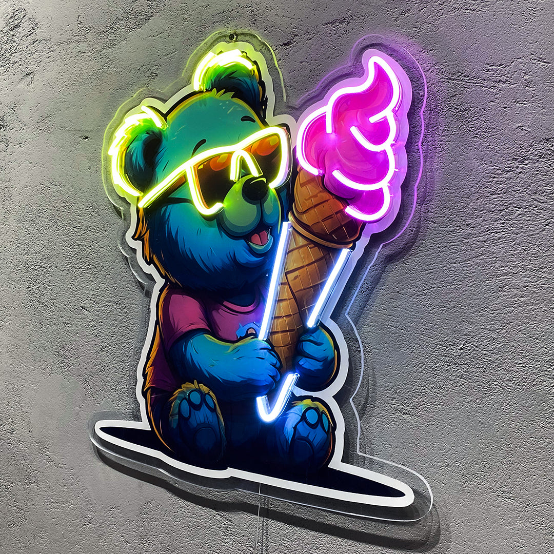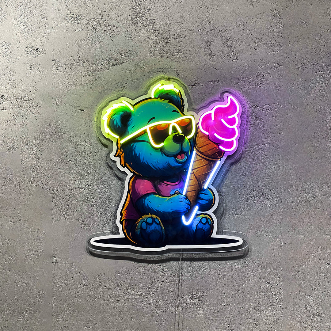 Bring an explosion of artistic vibes and a touch of fusion to your space with the Teddy Bear Holding Ice Cream from Neonista team.